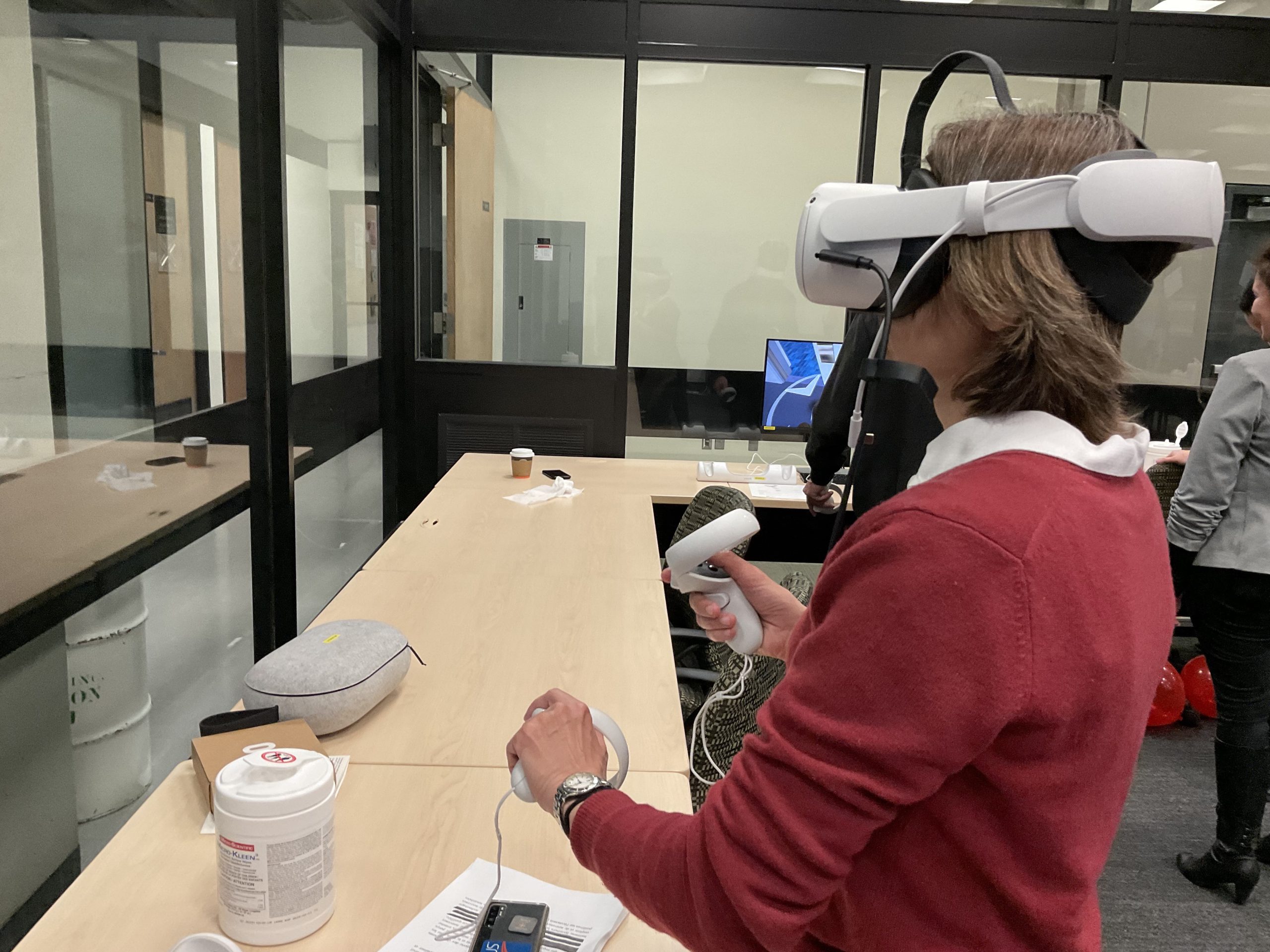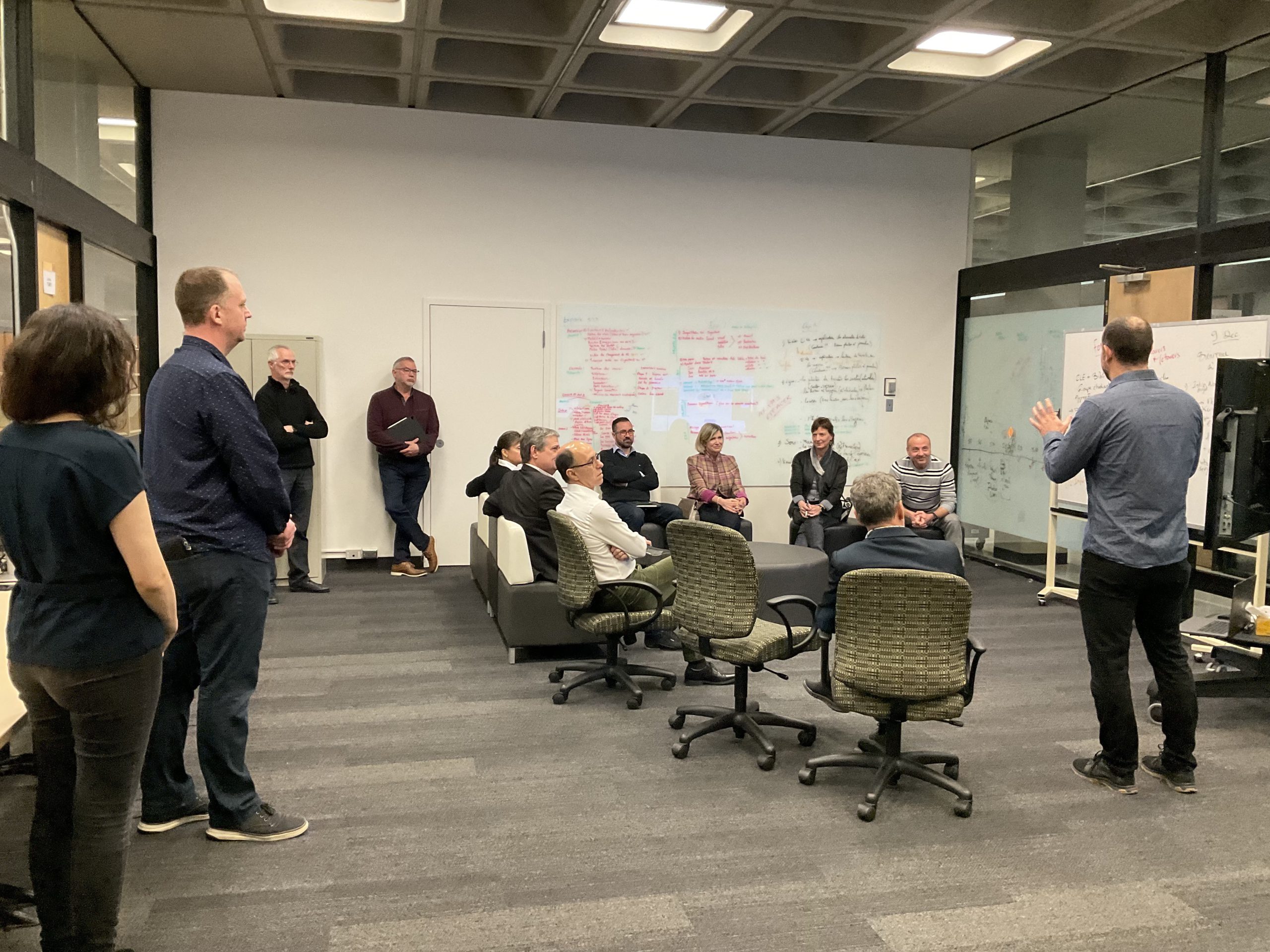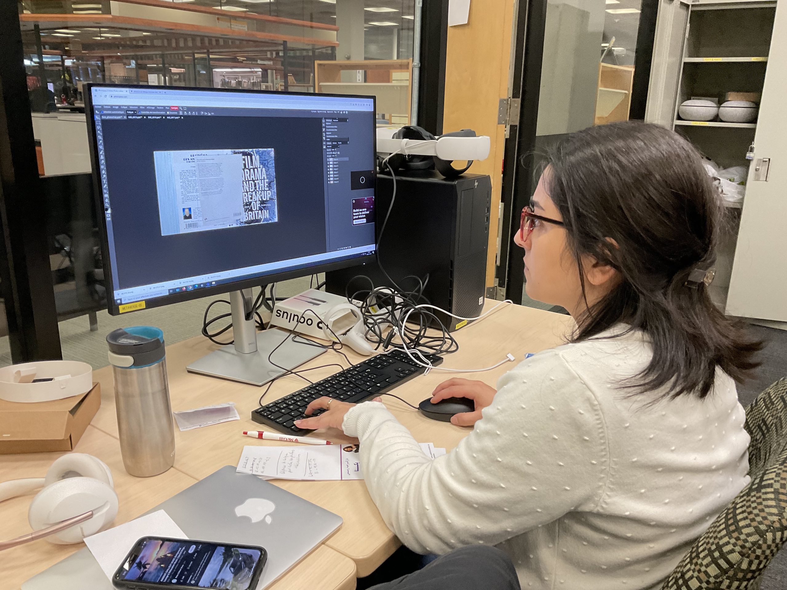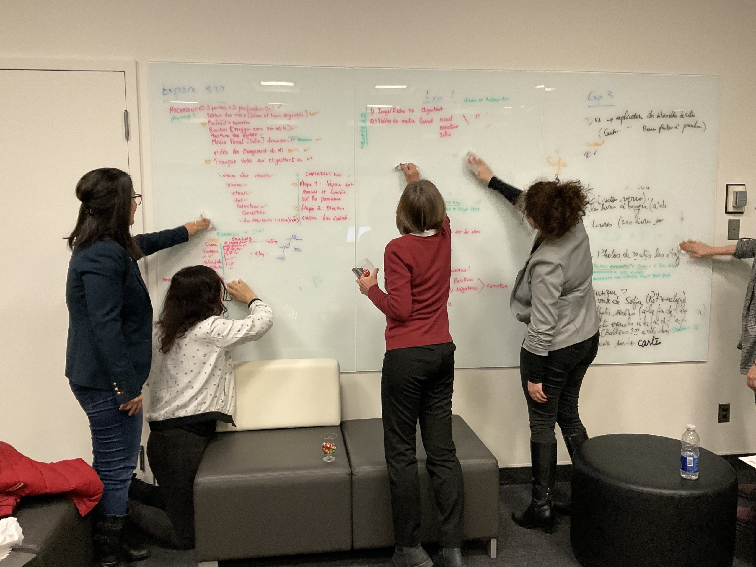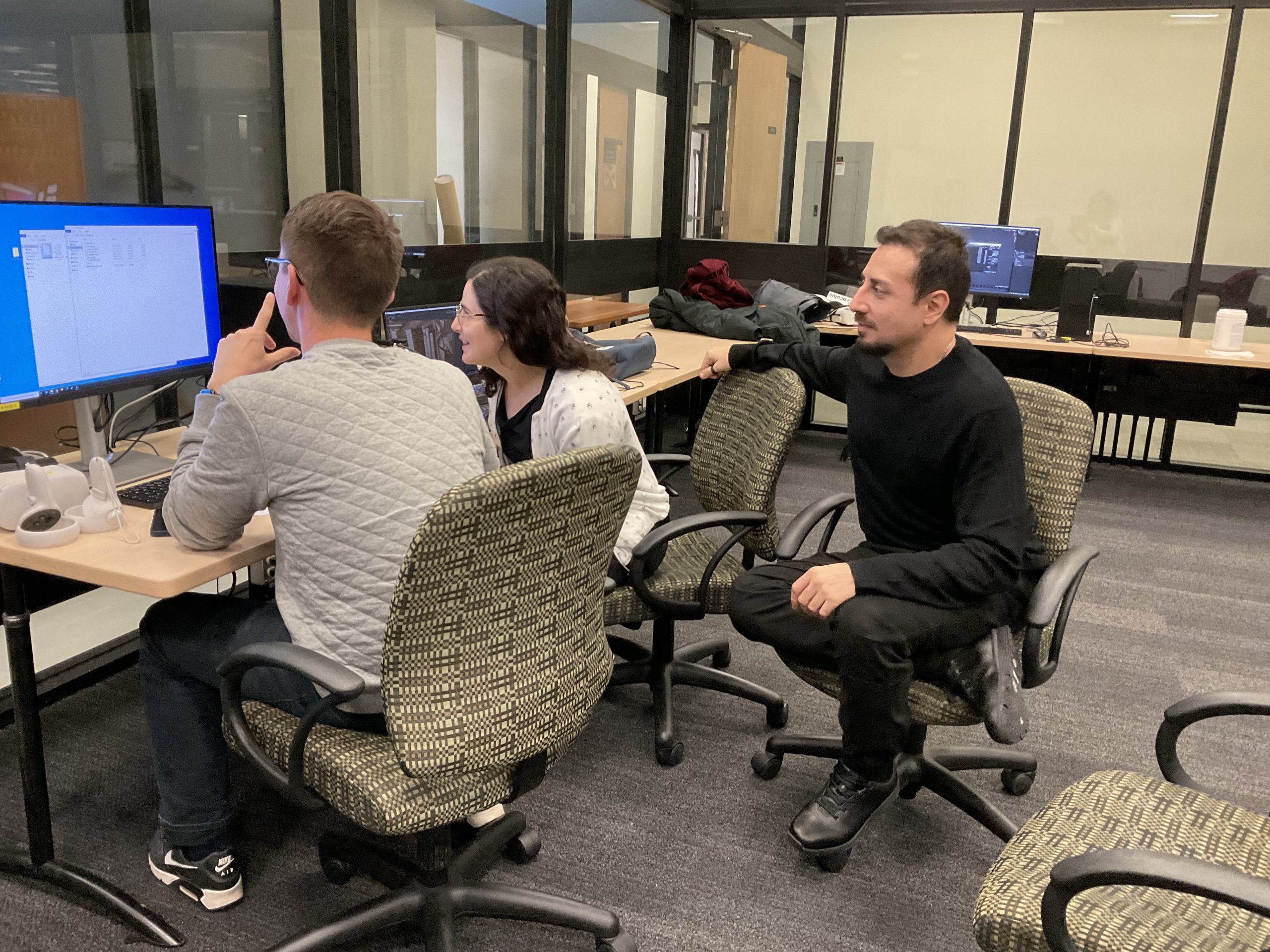 In collaboration with the Université Laval Library and OVA, the metaverse training project took place in an innovative space on the second floor of the Library. This space was equipped to accommodate an interdisciplinary group of undergraduate and graduate students to experiment with the StellarX software and to design and develop training adapted to the users of ULaval’s library.